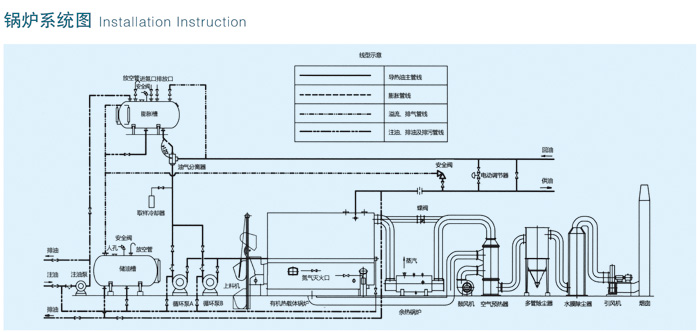 Heat conduction oil as heat carrier, using the circulating pump, forced heat conduction oil for liquid circulation, after transfer heat to heat equipment, it can send them back to the reheating furnace.
